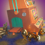 è composta al suo interno da parti elettriche e meccaniche ed in parte da elementi altamente segreti, l’installazione è composta da vari elementi di contorno, come la moquette disegnata appositamente con flash d’oro, oggetti in ceramica dorata, e molti altri elementi che danno all’installazione un forte impatto emotivo.